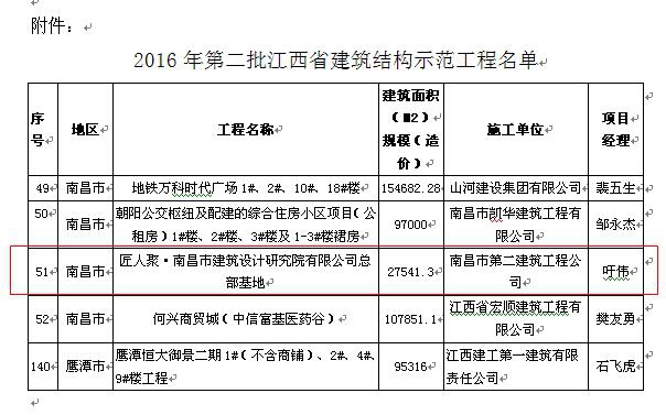 公司匠人聚?南昌市建筑設計研究院有限公司總部基地工地榮獲2016年第二批江西省建筑結構示范工程稱號
